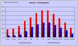 Ein einheitliches Klima für die Türkei lässt sich nicht beschreiben, da aufgrund der riesigen Fläche der Türkei, viele unterschiedliche Klimazonen vorherrschen. Für den Tourismus ist aber in erster Linie das Wetter an den Küsten des Schwarzen Meer und des Mittelmeer von Interesse. In diesen Gebieten herrscht fast während des gesamten Jahres eines angenehmes Klima, welches sich hervorragend für einen Sommer- und Badeurlaub eignet. So kann das Türkei Klima in diesen Regionen, in drei unterschiedliche Perioden, während des gesamten Jahres unterschieden werden. Die verschiedenen Klimaverläufe können Sie der jeweiligen Klima-Tabelle zur Türkei entnehmen, die wir zu einigen Städten zur Verfügung stellen.